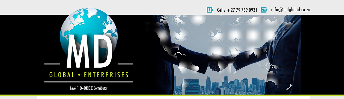 MD Global Enterprises was founded in 2015 born from years of packaging, logistical and corporate experience allowing us to provide our customers with quality products at comprehensive pricing the core lines that we supply are mainly Pallet Wrap, Shrink Wrap, Bubble Wrap, LDPE Bags and Courier Bags, Corrugated Boxes , All adhesive tapes such as Buff Tape, Masking Tape, Sello Tape hot temperature and cold temperature tapes clear and printed, Safety Wear ,Reflector vests , Thermo suits , Fire Retardant suits , Gloves , Boots ect.